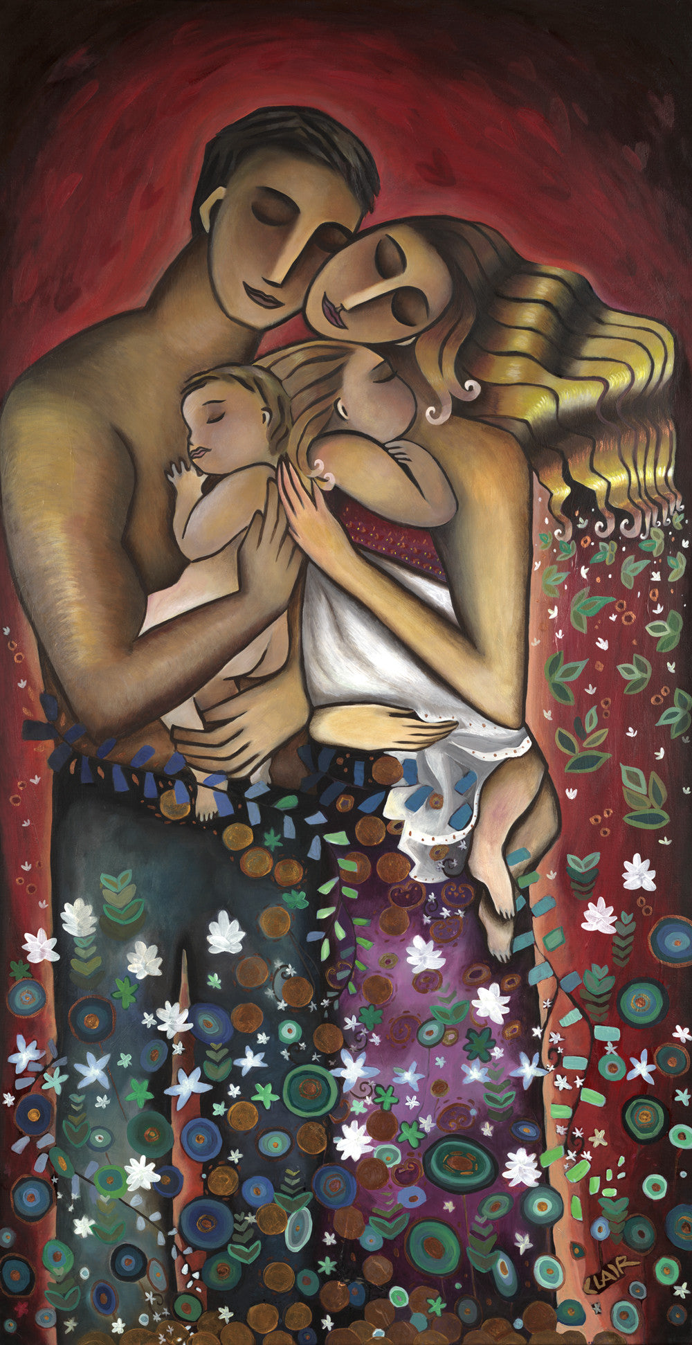 This painting was inspired by the artist Klimt and encompass the meaning of family.