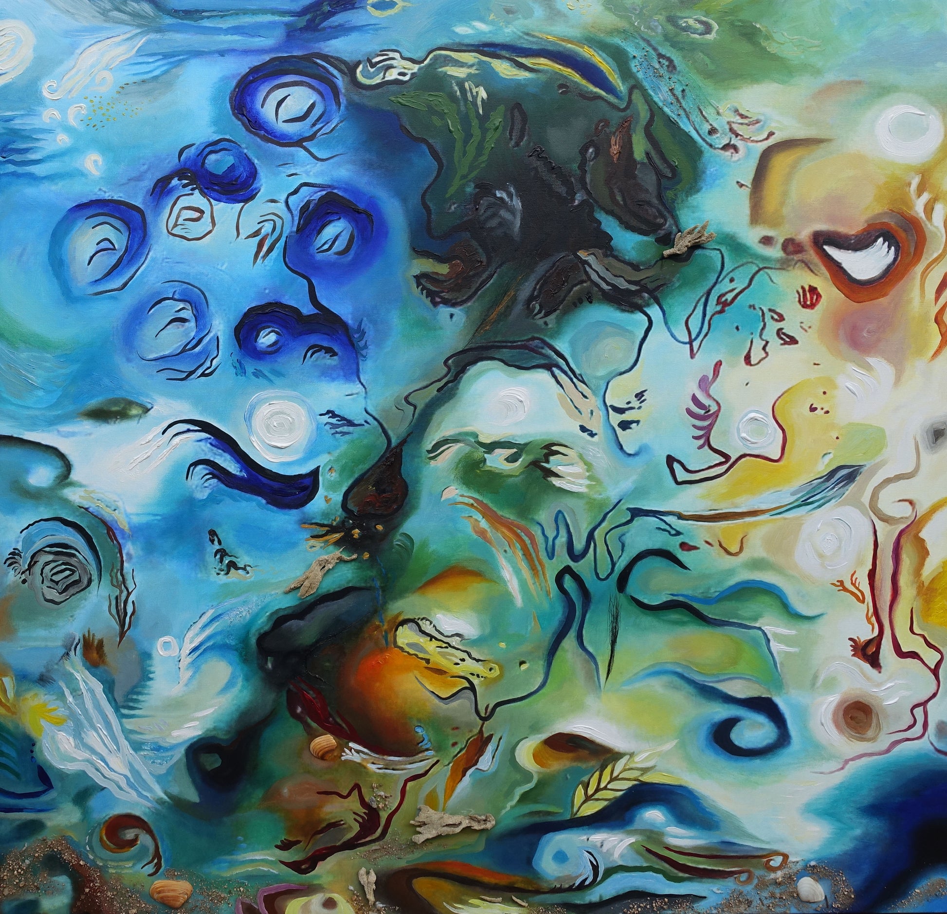 This was inspired by the sea and all the beauty that it beholds ... from the smallest shell to the tiniest organisms, this painting is an homage to the ocean and all its magic, life and mysteries yet to be found.