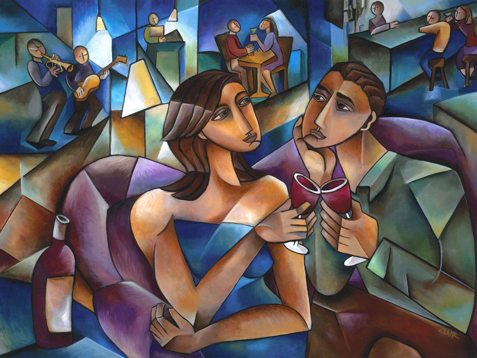 "A couple sits closely in a crowded place, listening to the music, sipping on sweet wine...totally captivated by the moment. Everyone seems to fade away, unimportant, un-existing. They raise a toast to each other, completing the perfect moment." ~CLAIR